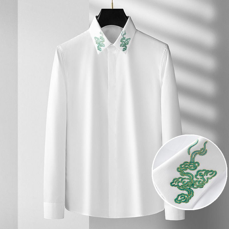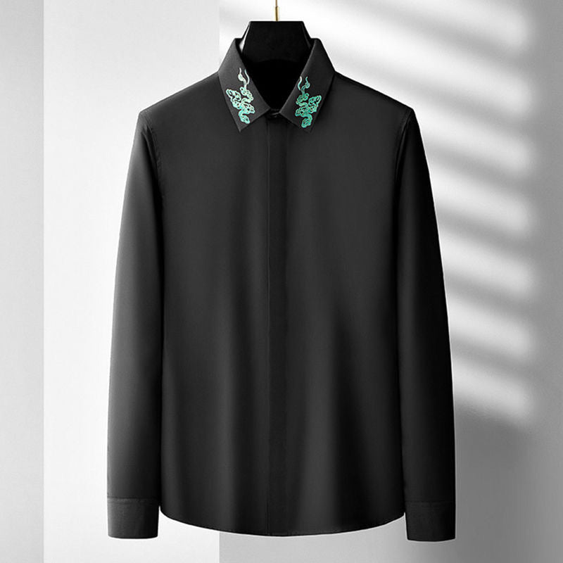 Men’s Contemporary Shirt with Embroidered Dragon Collar (BUY 1 GET 1 FREE)