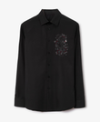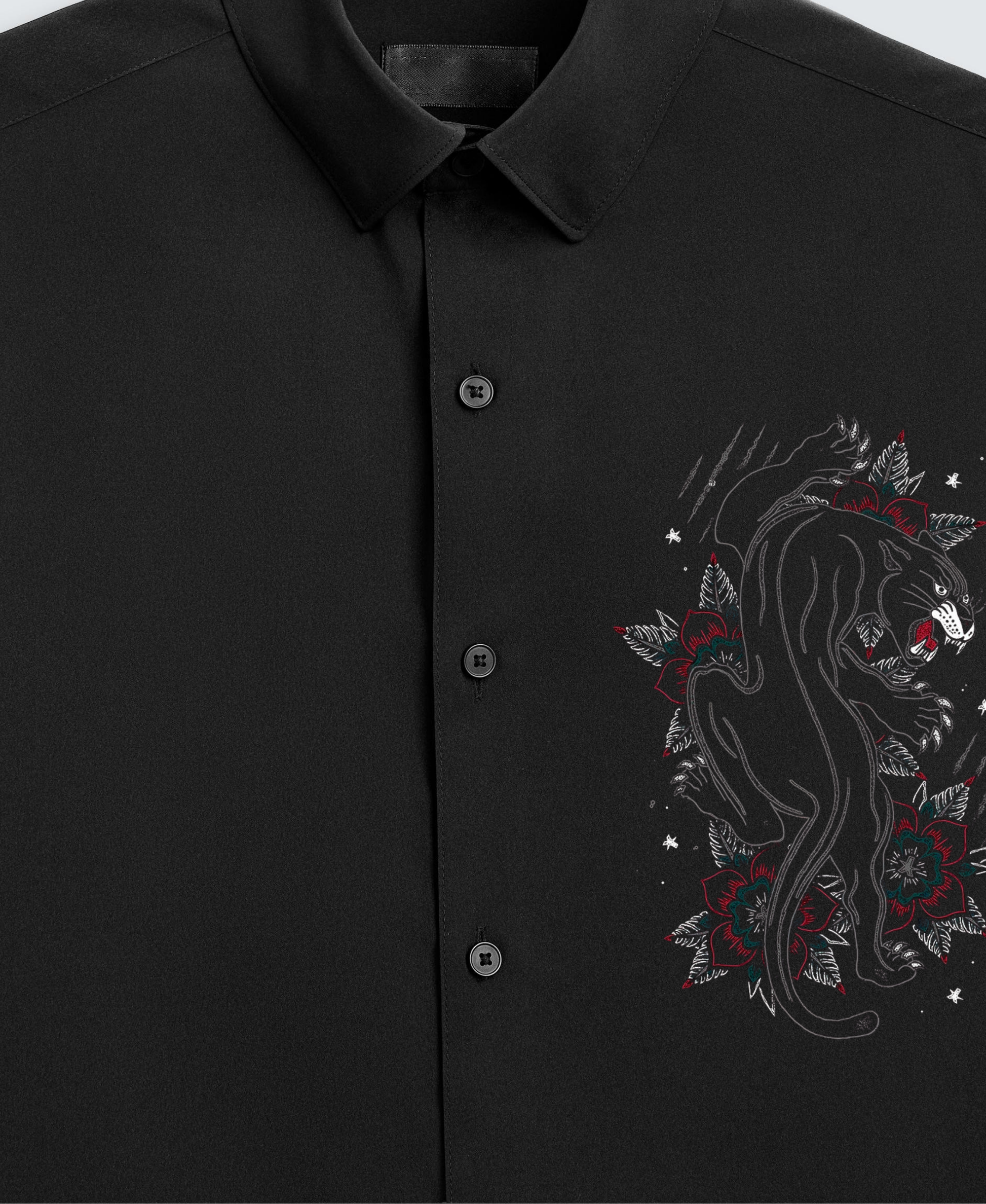 Men's Black Button-Up Shirt with Embroidered Lion & Floral Detailing (BUY 1 GET 1 FREE)