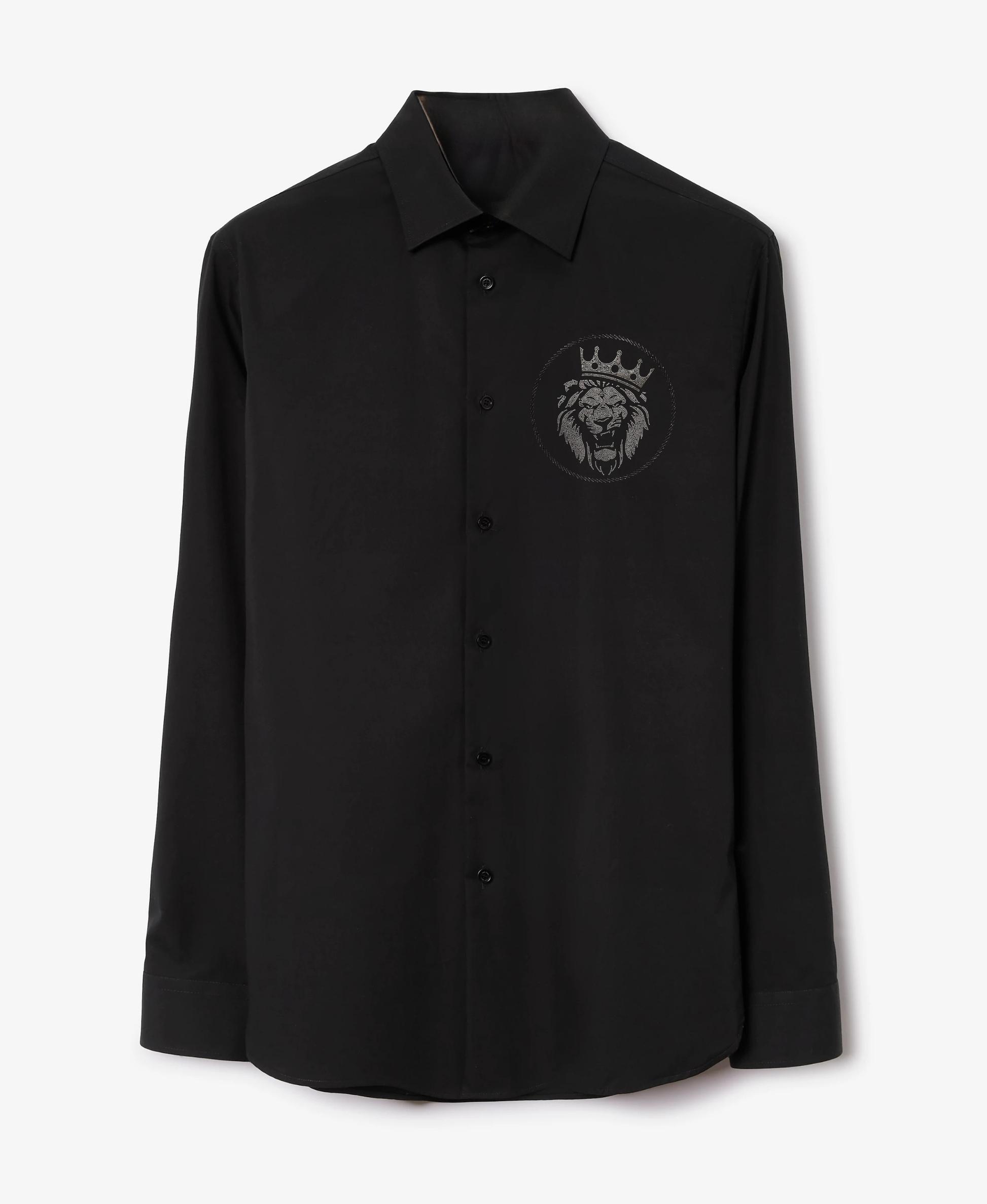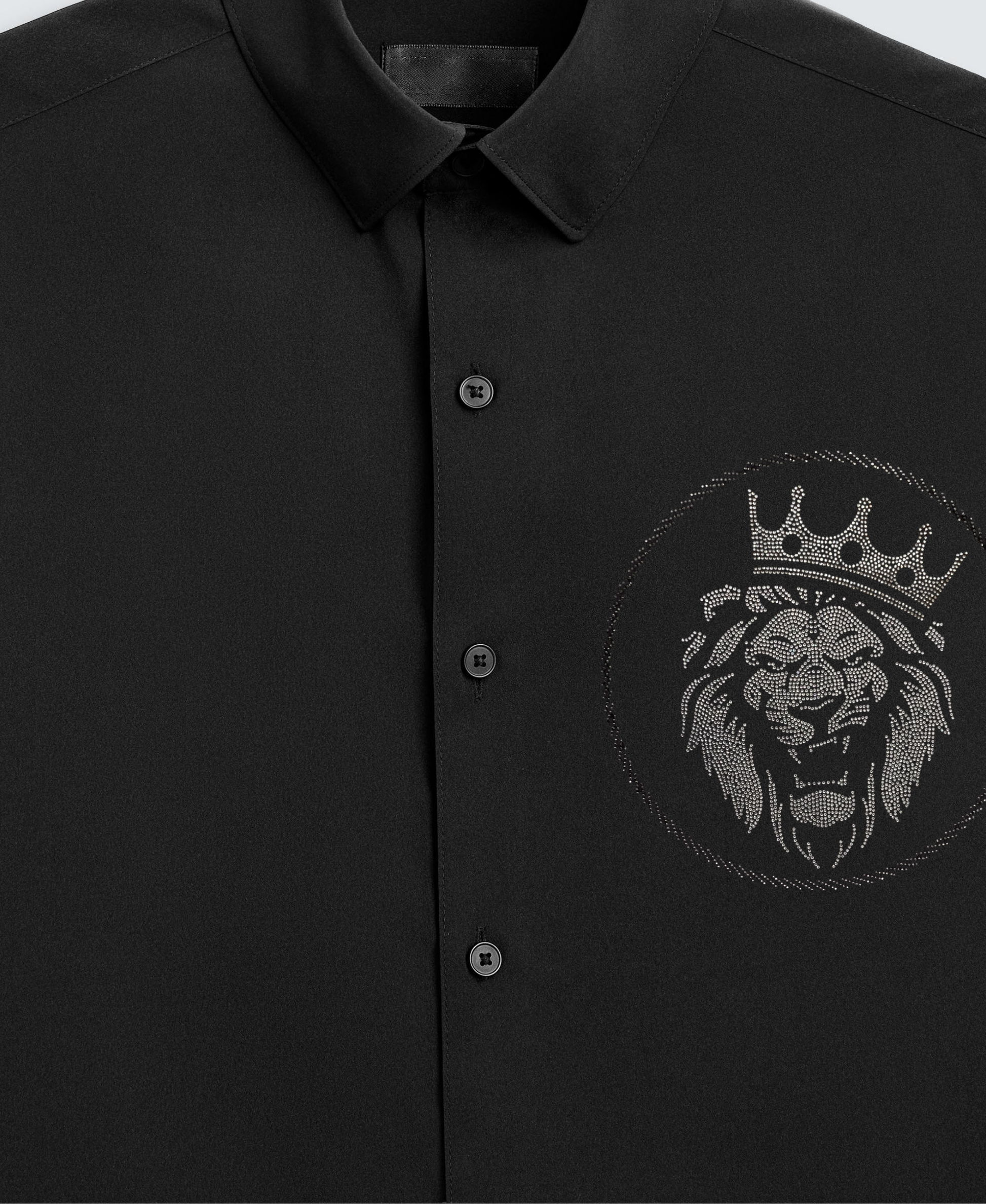 Men's Black Button-Up Shirt with Lion Crown Embroidery (BUY 1 GET 1 FREE)