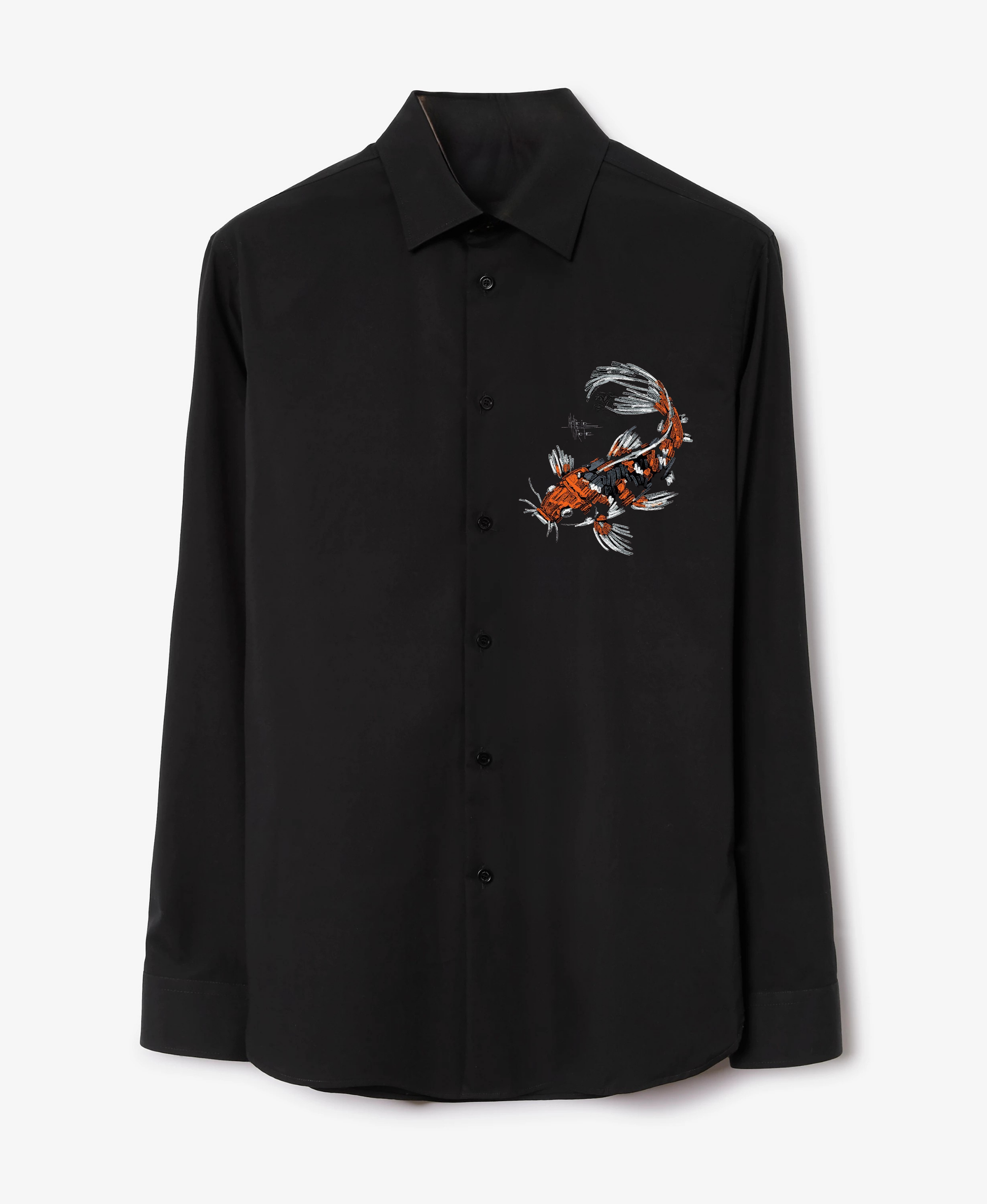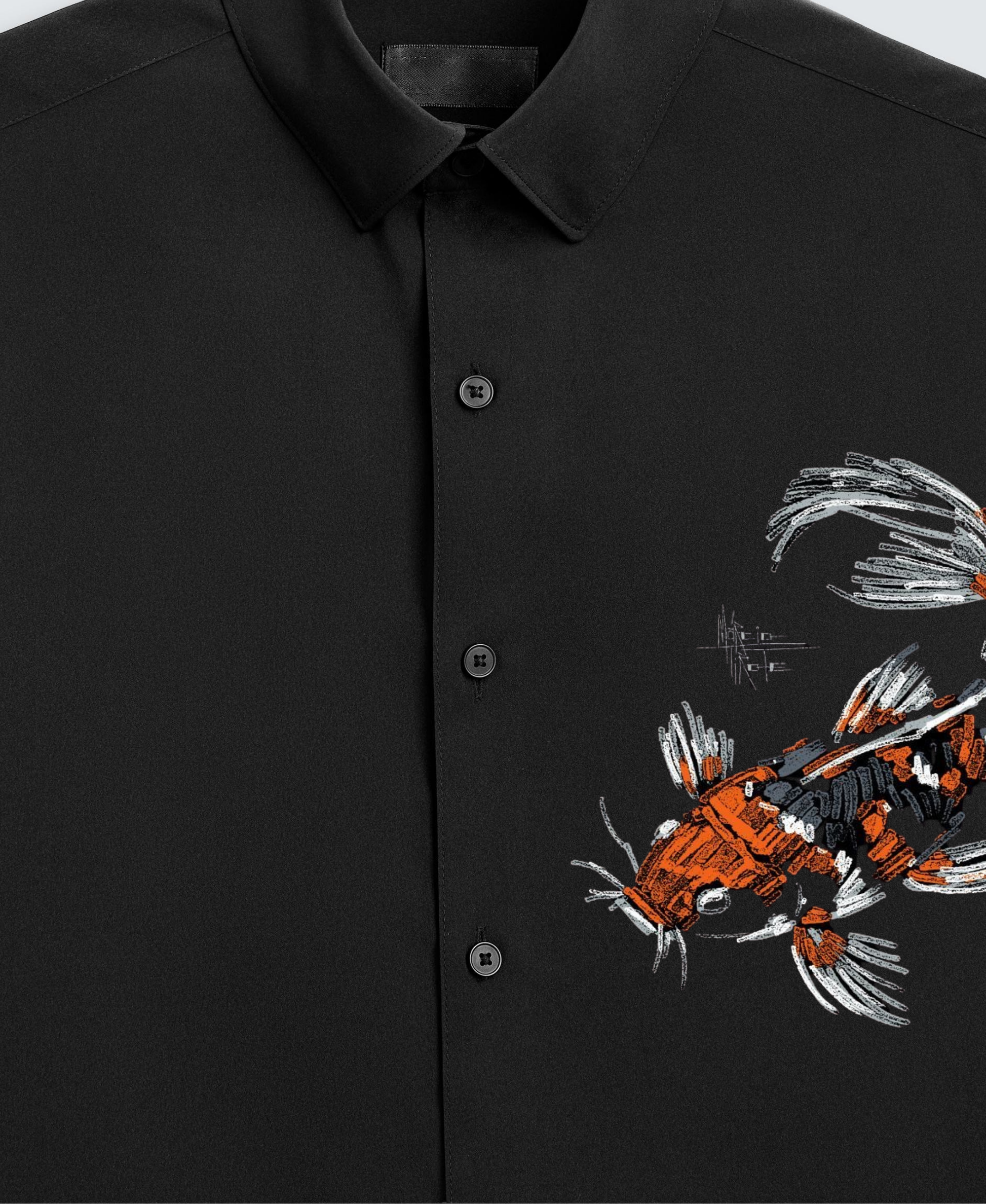 Men's Black Shirt with Vibrant Koi Fish Embroidery (BUY 1 GET 1 FREE)
